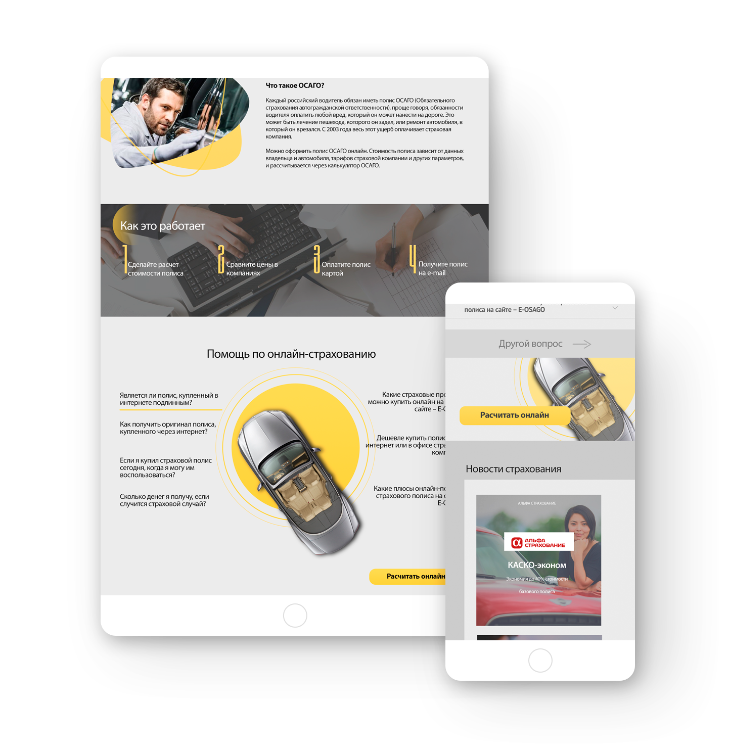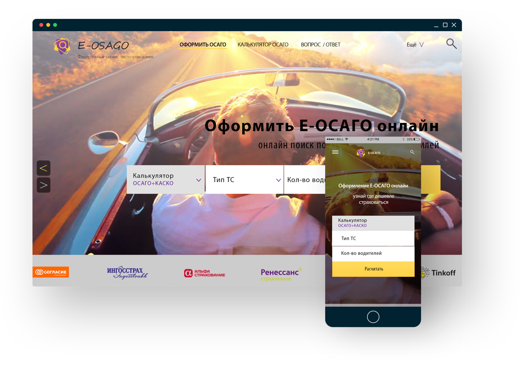 Разработать дизайн сайта, удобный и запоминающийся посетителям. Разработать дизайн калькулятора на сайт, комфортный для расчёта ОСАГО и КАСКО онлайн.